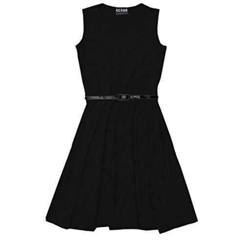 A2Z 4 Kids Mädchen Skaterkleid Kinder Partykleid Mit Gratis Gürtel New 122 128 134 140 11 12 13 Jahre - Schwarz, 158