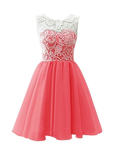 MicBridal® Kurz Tüll Spitze Ballkleid Blumenmädchenkleid für Damen und Mädchen Koral ca. Alter 11