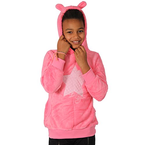 Kinder Teddy Plüsch Pulli Bär Ohren Stern Kuscheljacke Hoodie Sweatjacke Baby (140/146, Pink)