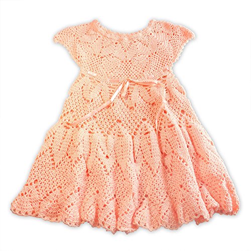 Mädchenkleid , Farbe Melone, hergestellt häkeln.